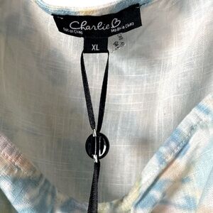 Charlie B | Printed Square Neck Linen Cami. Floral. Raw Edges. Size XL. NWT