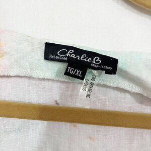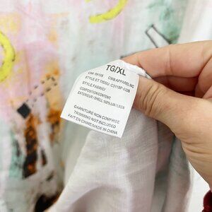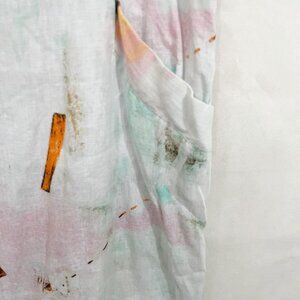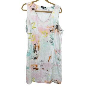 Charlie B White Multicolor Linen Shift Dress Pockets Artsy Lagenlook - Size XL