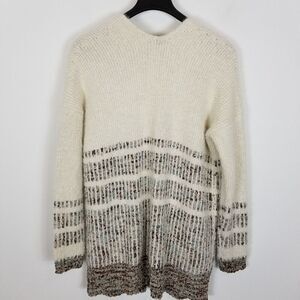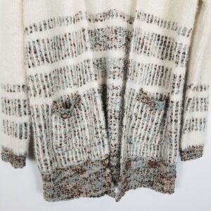 Charlie B Women Textured Fizzy Cardigan Sweater Sz L Beige Long Open Front Cozy