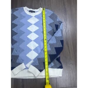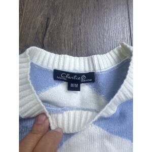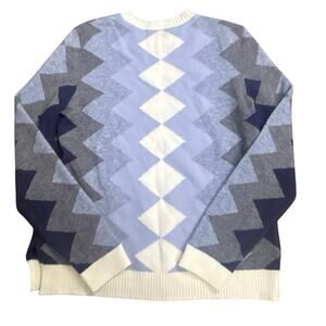 Charlie B Women’s M Geometric Zigzag Knit Sweater Long Sleeve Blue Gray White