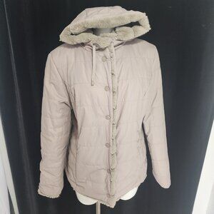 Charlie B Women’s Size M/M Gray Faux Fur Quilted Puffer Reversible Hooded Jacket