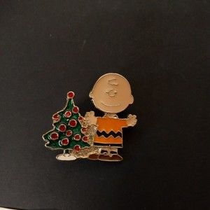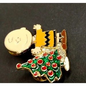 Charlie Brown Red Christmas Tree Holiday Lapel Pin.