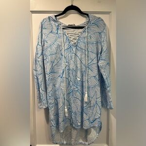 Charlie Holiday Blue White Coco Swim Oversize Beach Coverup Size Small US 4 EU34
