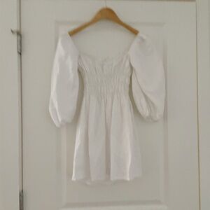 Charlie Holiday Boheme Linen Puff Sleeve Mini Dress