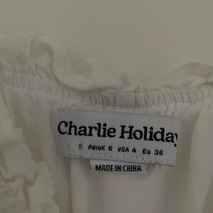 Enhanced with smocking, puff sleeves, and a romantic ruffled neckline, this Charlie Holiday dress is a sweet and summery cover-up that’s perfect for brunch-to-beach looks.