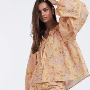 Charlie Holiday Boho Paisley Linen Blend Top NWT