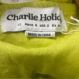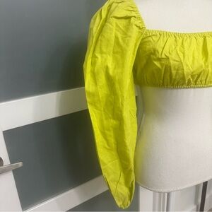 Charlie Holiday Lime Green Puff Sleeve Crop Top SZ XS Linen Blend Resort Wear Is New With Tags.