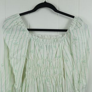 Charlie Holiday Linen Cotton Smocked Mini Dress Stripes Palm Trees Size 2