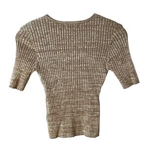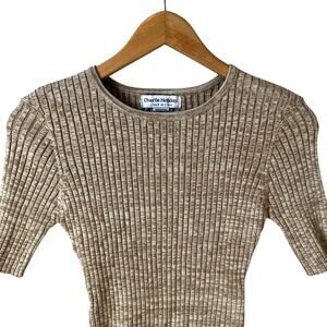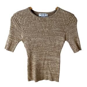 Charlie Holiday New Anthropologie Women Ribbed Knit Fitted Sweater Top Tan US 4