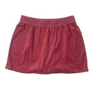 In a rust red colourway, this fun mini skirt features a wide elastic waistband and plush terry texture. Cute with the matching Soleil top for easy style and comfort.