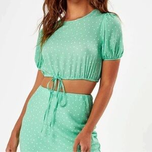 Charlie Holiday Stellar Green Polka Dot crop Top Size 6. An Anthropologie brand. This listing is for the blouse only however the matching skirt is also available for sale.
