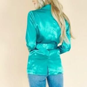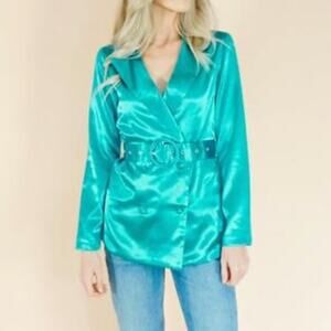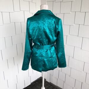Charlie Holiday Women's Green Satin Belted Double Breasted Quest Blazer sz 4