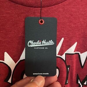 Charlie Hustle Unisex Boom Town Basketball T-Shirt, NWT. Size medium. These t-shirts are made in the USA by a company based in Kansas City. They are super soft and hood up so well. I know because I own soooo many!