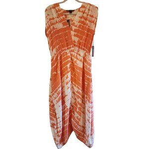 Charlie Jade 100% silk size Medium NWT orange and white v shaped hemline