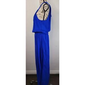 Charlie Jade Halter Silk Maxi Dress Sz Small Slip Cobalt Blue Side Slit