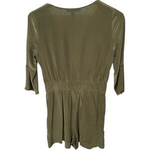Charlie Jade Olive Green 100% Silk Romper Roll Up Sleeves & Hems Sz S