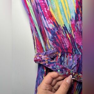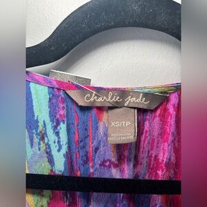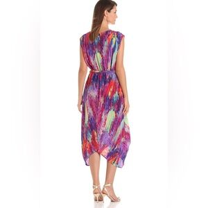 Charlie Jade Women's Multicolor 100% Silk Belted Faux Wrap Dress Size XS