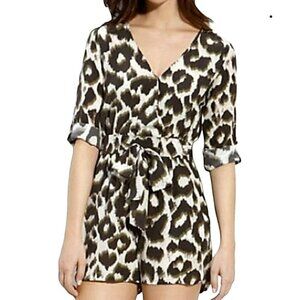 Charlie Jade Women's Romper Size Medium Animal Print White Brown Green 100% Silk