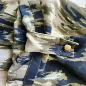 This Charlie Jade romper is so cute. The top is a cross-over top that snaps for great coverage. The waistline has a band. Comes with a tie belt . The sides of the legs have snaps to raise side up a bit or wear the shorts down. sleeves do also. The color is ivory, navy, browns... best described.