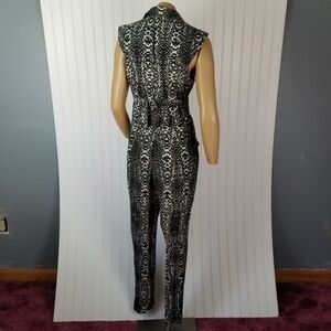 Charlie Jade Womens Snake Print Jumpsuit Small Utility Cap Sleeve Black Gray NWT
