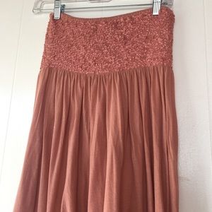 Pretty and so comfy maxi dress with sequined detail on top. Stretches on top. Flowy ๐ peach/pink color. I'm too top heavy for this dress, or i would model it. It's so pretty on. Very high end designer. From Marseille ๐๐