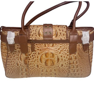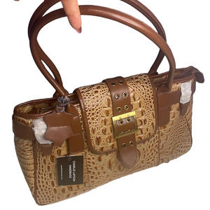 Charlie Lapson Leather Handbag Croc Embossed Satchel - NWT