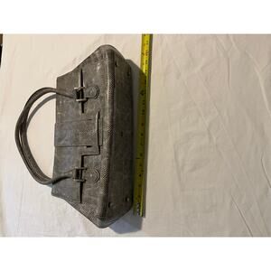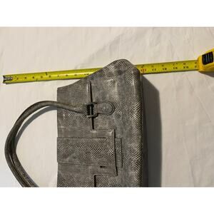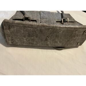 Charlie Lapson taupe faux leather tote bag featuring a snake embossed textured finish that mimics exotic reptile patterning. Structured silhouette with double shoulder straps and a clean polished design suitable for work travel or everyday use. Bag measures approximately 17 inches wide and offers a roomy interior for essentials documents or a laptop. Made from high quality faux leather with a durable structured body that holds its shape well. Shows wear on the shoulder straps as shown clearly in photos and priced accordingly. Overall bag remains sturdy functional and well made with a timeless neutral look. All measurements are shown in photos. Buyer pays return shipping.
