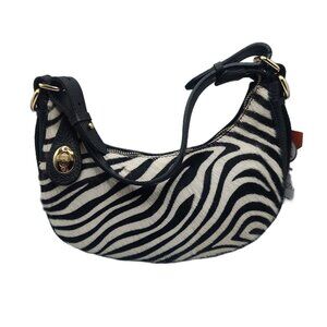 Charlie Leather "Belluccina" Black & White Zebra Leather Shoulder Bag-NWT