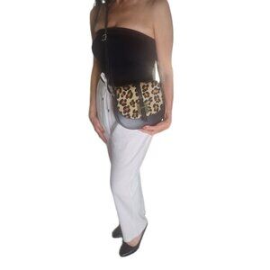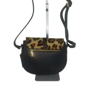 Charlie Leather "Mack" Small Half Moon Black & Leopard Crossbody Bag–NWT