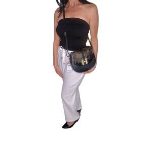 Make a bold yet refined statement with this Charlie Mack Small Half Moon Crossbody, new with tags and crafted in Italy. Designed from genuine cowhide leather and real fur, this bag blends classic craftsmanship with a modern, edgy camo print finish.