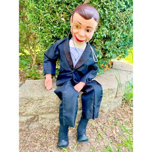 This vintage Charlie McCarthy ventriloquist doll is sure to be a treasure for any collector. With its classic design and mouth that works with ease, this doll is perfect for display or play. This doll is a true piece of history and is sure to delight anyone who sees it. The character of Charlie McCarthy is well-known and this doll is a great addition to any collection of vintage toys. Whether you're a fan of ventriloquism or just love collecting unique items, this doll is a must-have.