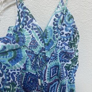 Charlie Paige NWT Dress One Size Flowy Cover Up Beaded Boho Blue Teal Aqua Beach
