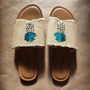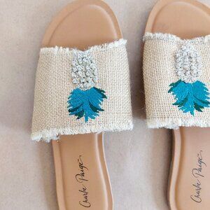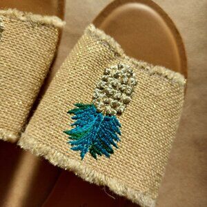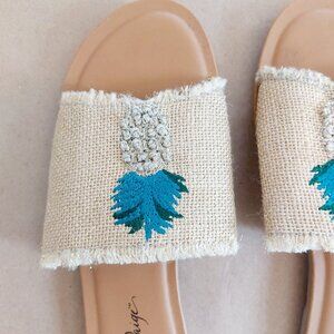 Charlie Paige Pineapple Embroidered Jute Slide Sandals