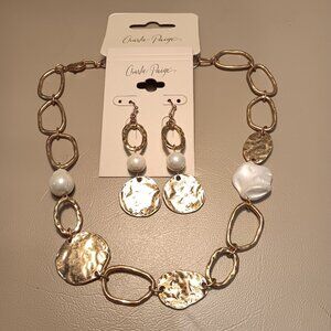 Charlie Paige women's matching set gold tone coin & faux pearl necklace & earrings - NWT. NWT; new with tag, new on card. Original retail $40