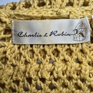 Charlie & Robin Anthropologie Butter Yellow Open-Knit Cardigan Sweater Size S