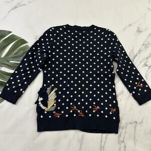 Charlie & Robin Anthropologie navy blue and white polka dot chicken embellished cardigan sweater, size XS. It is free from any rips or stains. It measures about 32 inches around the bust and is about 23 inches long.