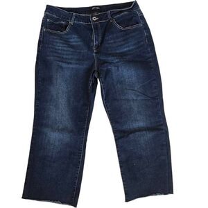 Charlie Women's Low Rise Raw Hem Dark Wash Denim Crop Jeans Blue Size 14