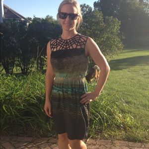 Beautiful boutique dress with fun top. Worn once excellent condition with spare button attached in original bag. Looks cute with or without belt. 100% silk. I am a size small or 2, but this medium fits just perfect