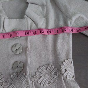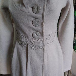 Anthropologie Charlie and Robin "Alice in Autumn" 100% wool, felted, unlined. Beautiful detailing at waist and neckline. Oversized buttons. In-seam pockets. Lightweight and perfect for Spring or Fall!