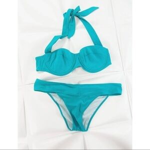 Charlie by Matthew Zink MZ Jerry Halter Bandeau Bikini 2pc Set Turquoise Sz L