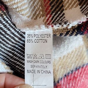 Perfect for layering, this plaid shirt jacket features a classic button-down design with a modern twist with decorative buttons, chest pockets, and a straight hemline. Great pre-owned condition.