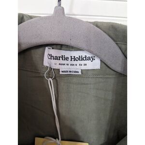 Charlie Holiday Harlow Oversized Shirt women's size 6 khaki green linen blend