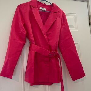 Charlie Holiday Pink Satin Double Breasted Belted Blazer