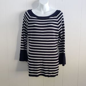 Charlie Paige Blue and White Striped Bateau Neck Sweater Top M