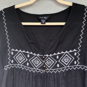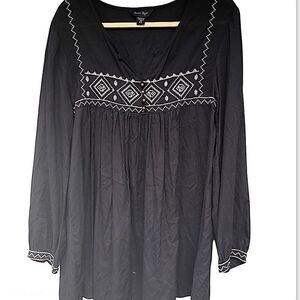 Lightweight fabric loose BoHo style black embroidered top/blouse/tunic