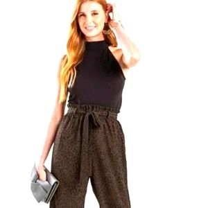 Mi ami Jumpsuit Black Top Leopard Bottoms Sleeveless Wide Leg Flowy Sz S