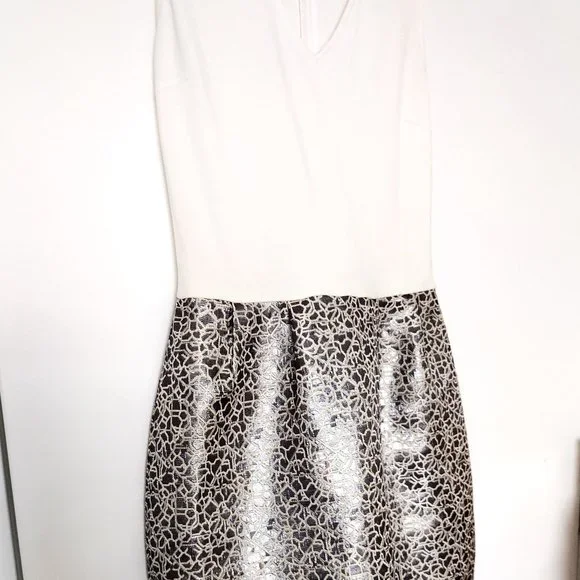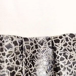 Silver-metallic material. Color: Cream, Silver-Metallic & Tan. Material: 60% cotton, 30% polyamide, 5% polyester, 5% elasthane. lining: 100% cotton. Never worn!