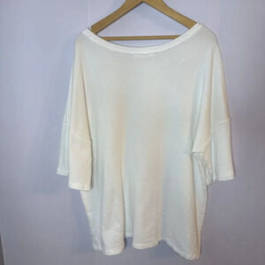 Charlotte Avery Womens Oversized Med T Shirt White Boxy Baggy Raw Hem Basic