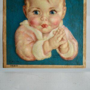 Charlotte Becker Now I Lay Me Baby 3D Embossed Cardboard Lithograph Print 3.75 x