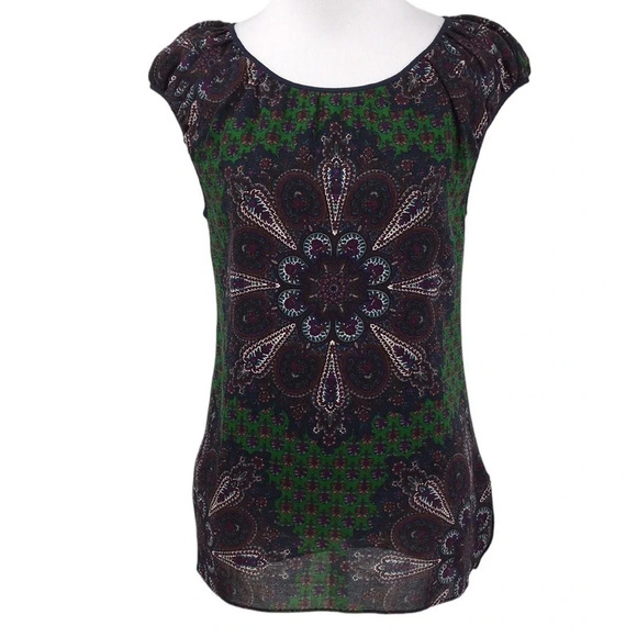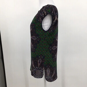 Charlotte Brody Blouse Womens XS Green Blue Wool Boho Top Lined Medallion